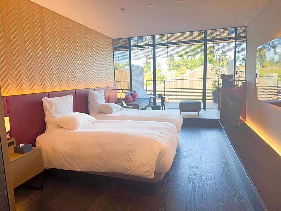 The spacious twin room offers air conditioning, tatami, as well as a private bathroom featuring a bath and a shower. The twin room features parquet floors, a seating area with a flat-screen TV, soundproof walls, a mini-bar, as well as a tea and coffee maker. The unit offers 2 beds.